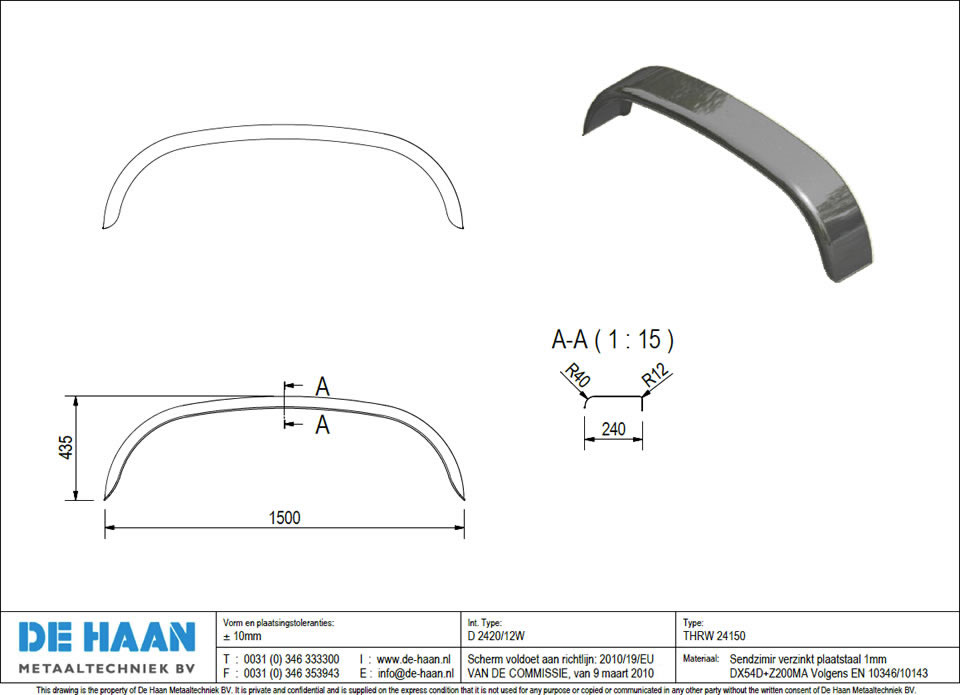 Dieses Anhänger Ersatzteil BU10-20321 DE HAAN THRW 24150 Tandemkotflügel, D 2420/12W wurde für PKW Anhänger & Wohnwagen produziert.