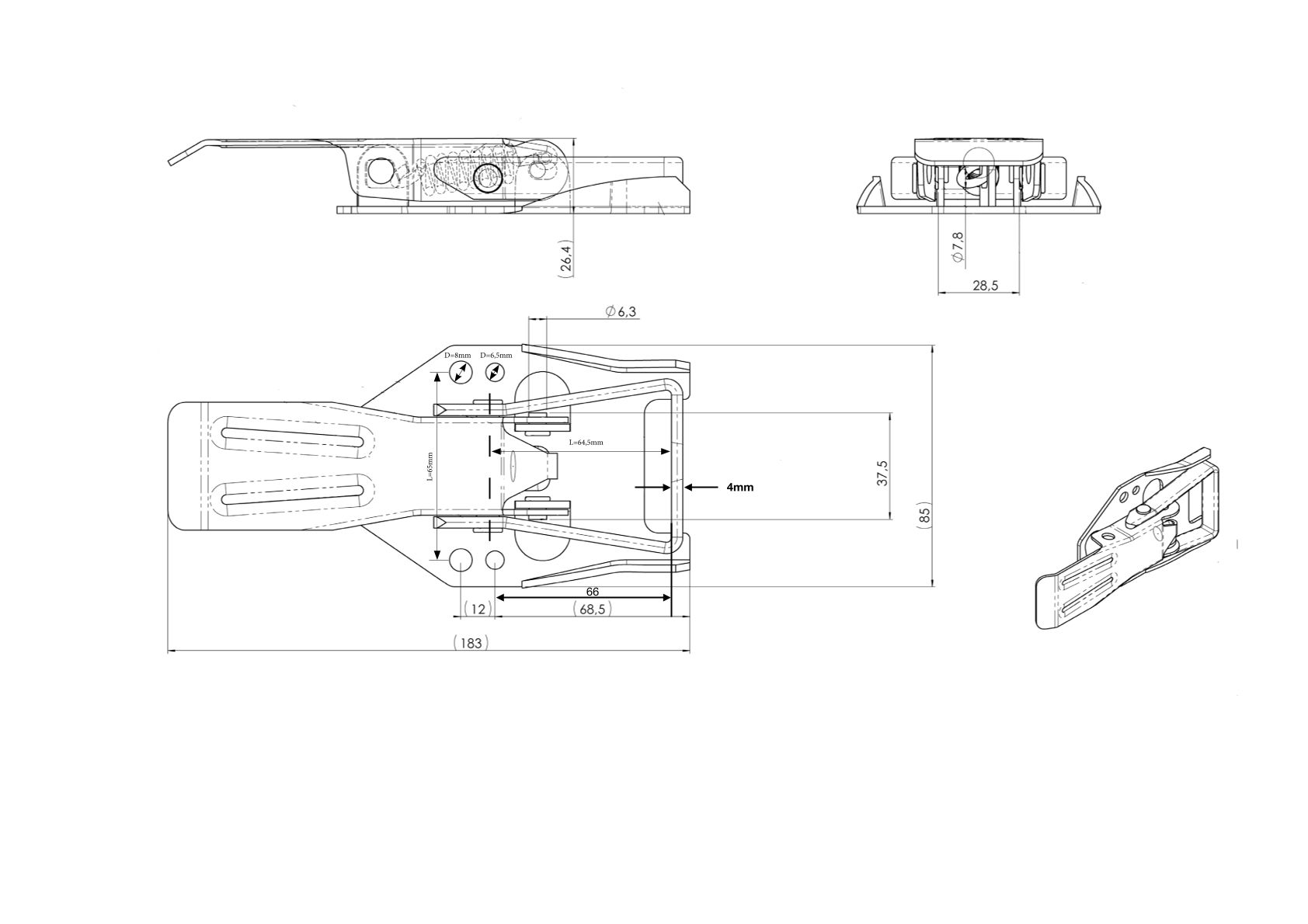 Exzenterverschluss, 85 x 183 x 26,4 mm