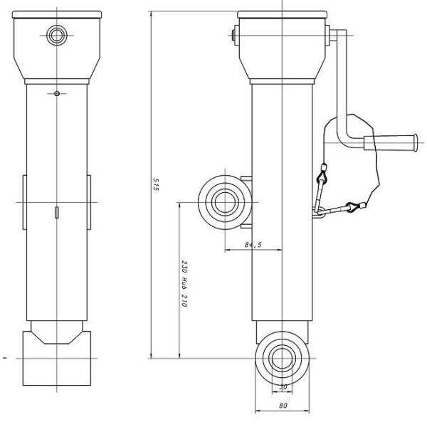 Produktinformationen "MURAUER Deichselstütze, 515 mm Ausdrehlänge 230 mm"